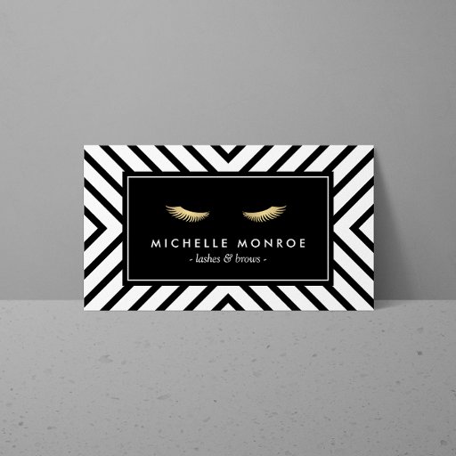 Coordena-se com os Eyelashes do Ouro com o Modelo de cartão de negócios de Padrão Branco e Preto do Mod até 1201AM. As pestanas de ouro falsas estão associadas ao seu nome ou nome comercial nesta camiseta salônica das extensões de pestanas. Criado para salões de beleza, bares de lash, profissionais de cílios e maquiadores. Arte e design © 1201AM Design Studio | www.1201am.com