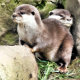 Um design fotográfico de um par de pequenas lontras muito bonitas. Inglaterra Reino Unido.