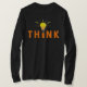 Um design simples que diga "pensa" com uma ampola que pontilha a letra "mim" em amarelo e na laranja. Há umas linhas onduladas em torno do bulbo que poderia discutìvel representar o cabelo unkempt de Albert Einstein.
