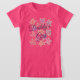 Camisa florada em coral rosa brilhante e impressão floral roxo. O texto da pai pode ser personalizado para qualquer mensagem. Texto ou imagem de flor são removíveis.