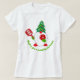 Camisetas bonitas de criança de piquete de Natal com anão de Natal feliz vestindo chapéu de árvore de Natal e segurando um remo de piquete. Texto personalizável