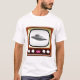 Uma imagem preto e branco de uns pires de vôo em um aparelho de televisão retro dos anos 50.