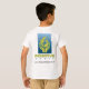 T-shirt do algodão das crianças com Mente sã em corpo são através da parte dianteira, e logotipo do poder e endereço de Web site positivos na parte traseira.