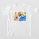Desenho animado de criança caprichosa de um menino remando na praia.