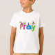 A ilustração bonito dos desenhos animados de rapazes pequenos felizes e diversos e as meninas que escalam sobre as letras gigantes do alfabeto que soletram para fora a palavra PRAY. Imagem disponível em vários presentes e produtos. T-shirt. Hoodies.