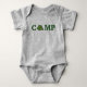 O traje de bebê apresenta uma ilustração original de uma tenda de acampamento verde, formando a letra A na palavra CAMP. Excelente para quem ama acampar, caminhar ou excelente ao ar livre! Há muita coordenação disponível para acampar, caminhar e escalar produtos temáticos. Não vê o que está procurando? Precisa de ajuda para a personalização? Clique em "perguntar a este designer" para criar um fato para bebê só para você!