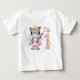 Design de primeiro aniversário de fantasia linda com princesa gatinho vestindo um vestido rosa bonito com asas de fada, coroa e varinha. Cor de fundo personalizável.