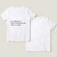 A t-shirt chegou dentro do tempo anunciado e apresentou-se com todas as características que estavam anunciadas. Boa qualidade do tecido e bons acabamentos. O tamanho veio conforme o pedido. Perfeita! Fiz apenas uma pequena personalização no texto, e o mesmo assim veio, bem como todo o restante texto, devidamente impresso e exactamente como estava anunciado na página. Sem falhas!