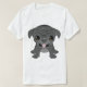 Uma imagem do estilo dos desenhos animados de um puglet preto pequeno impertinente