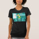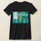 Com este t-shirt retro da cozinha, você pode comer sua torta e comê-la, demasiado. Este desenho kitschy, minimalista da arte caracteriza uma dona de casa perfeita dos anos 50, em sua cozinha moderna do meio século. O padeiro bonito está vestindo um flouncy, o vestido do verde e um avental branco com detalhe vermelho. Não um cabelo em sua cabeça loura é fora do lugar. Em uma mão, está guardarando a fruta de seu trabalho--uma lindo, estrutura cobriu, torta da fruta. Uns relance e você saberão que suas crostas de torta flocosos são em segundo a nenhuns. Está estando em um assoalho do tabuleiro de damas do aqua e da cerceta, de que esteja indubitàvelmente limpo bastante comer fora. Contra uma parede do aqua, nós vemos o cabinetry da cerceta com trabalho da guarnição do aqua, uma bancada vermelha, trações vermelhas da gaveta, e acentos pretos do starburst. Um vermelho, pulso de disparo do starburst está pendurando na parede. Ao lado, há um refrigerador avançado, branco com punhos de prata. Pelo menos, o refrigerador era in 1950 avançado. Agora, é apenas sonhador liso! Se você é Homemaker de Suzie ou tem simplesmente uma afinidade para todo o vintage das coisas, você é certo amar esta fatia deliciosa de americana.