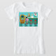 Servir acima algo especial com este t-shirt retro da fonte de soda. A arte minimalista, características de design do desenho dos desenhos animados o interior do ponto o mais fresco na cidade. É uma fonte de soda dos anos 50, em toda sua glória kitschy! Contra o contexto de uma parede do aqua, nós podemos ver posters anunciar as especialidades da casa. Um poster mostra um Hamburger e uma garrafa do pop para o preço de saldo de 15 centavos. O outro poster mostra a duas colheres do sorvete em um cone do açúcar para meros 5 centavos. Com preços goste destes, ele deve ser difícil olhar sua cintura! Um empurrão de soda o mais competente está equipando o contador da cerceta com acentos amarelos. O homem novo com as éticas de trabalho fortes está guardarando um cone do sorvete com uma única colher do limão - sorvete amarelo--embora, para ser justo, poderia ser abacaxi! O rapaz do limpo-cut está vestindo uma camisa como novo, branca com um preto, o laço e um chapéu branco com acentos vermelhos. No lado oposto do contador, nós vemos três vermelhos e tamboretes de bar do cromo. É empoleirado em um dos tamboretes um teenybopper louro cuja a boca esteja molhando certamente. É obscuro se sua boca está molhando sobre o cone do sorvete que é dirigido sua maneira ou o homem novo industrious que a está servindo. Está vestindo uma saia cor-de-rosa da caniche e um formulário que cabem a parte superior preta. Seus fechamentos amarelos são puxados em um rabo de cavalo clássico. Ao lado deste cutie de um cliente há um jukebox colorido, clássico, que caracterize a grão marrom, de madeira, o paneling e luzes de néon coloridas. Melhore do que isso, ele é certo caracterizar todas as grandes batidas do rock and roll do tempo! O assoalho desta sala de estar moderna do sorvete do meio século é um aqua e a cerceta, o teste padrão do tabuleiro de damas que apenas está gritando para que alguém tente toda a dança a mais atrasada move-se.