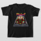 O t-shirt retro do pinball do estilo no os anos setenta clássicos olha com uma mesa do pinball do estilo dos anos 70 impressa na parte dianteira.