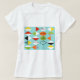 Este t-shirt retro do teste padrão do Harlequin é estilo moderno do meio século no seu mais fino. O vintage inspirou características que de design um fundo do aqua com fileiras das formas triangulares que formam um harlequin modela. As formas dois-tonificadas do diamante são amarelas, brancas, vermelhas, alaranjadas, pretas, verdes, e branco com acentos pretos. Mas a espera, lá é mais! Há igualmente uns ovals alaranjados, uns ovals verdes com starbursts pretos, e uns esboços dos carvões. O tempo marcha sobre, mas você sentirá como você encontrou uma explosão kitschy do passado com este tesouro geométrico colorido.
