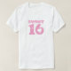Celebre seu décimo sexto aniversário com nossa camisa retrô, estilo 1970, "Sweet 16"! Este design cor-de-rosa fofo está angustiado por um olhar antigo. Acentuado com um coração cor-de-rosa.