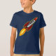 Um foguete retro do estilo 1940/50s sopra-a é maneira na órbita, ou talvez à lua ou ao Marte.