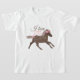 Personalize facilmente este adorável cavalo minúsculo marrom e camiseta rosa de jardim. Este é um presente perfeito para amantes equestres, fãs de cavalos em miniatura, ou pôneis para qualquer ocasião. Excelente como presente de aniversário equestre, presente de aniversário para seu amante de cavalo, Quinceanera, presente de Dia de os namorados do amante de cavalo, ou presente de morcego mitzvah.