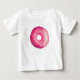 Tee bebê com uma ilustração brilhante de uma rosquinha de fosco rosa com aspersores coloridos.