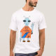 A alienígena ostenta umas economias o t-shirt dos seres humanos para aumentar a consciência da situação das vítimas do tsunami.