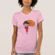 Ilustração dos desenhos animados de uma senhora da gueixa. Está vestindo um quimono do rosa quente, uns deslizadores cor-de-rosa e uma sombra para os olhos verde. Seu cabelo preto está acima em um bolo e está levando um guarda-chuva/parasol.