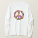 Um sinal de paz floral de tons cor-de-rosa, turquesa, amarelo, laranja, roxo, verde e preto. Note-se que, devido às pétalas pretas, este design não deve ser colocado sobre fundo preto.