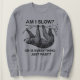 Sou lento? Ou tudo é rápido? - design de ilustração Engraçado de Lama num galho. Altere o plano de fundo para a cor de sua escolha.