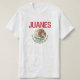 Um t-shirt que caracteriza uma águia mexicana afligida que caracteriza o sobrenome Juanes.