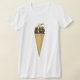 Este design é o sorvete de chocolate mais delicioso. O sorvete é um pedaço de sorvete de chocolate em um cone. Ele então tem um molho de chocolate branco perfurado sobre o topo. Este design de chocolate parece excelente nesta camiseta feminina. Perfeito para si mesmo ou como presente