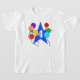 Uma estrela azul grande com um número grande quatro e os lotes de balões coloridos do aniversário decoram este t-shirt do aniversário da estrela do divertimento 4o! Comemore no estilo!