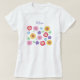 Camiseta feminina do Jardim Flor. Este é um design de jardim com 5 tipos de flores florescendo. (Girassol, Nemophila (olhos azuis do bebê), Cosmos, papoila da Islândia e Bellflower.) As cores são moles porque são desenhadas com lápis coloridos. Esta camiseta é divertida para mãe e filhos vestirem de primavera para cair.