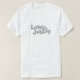 T-shirt tipográfico do slogan no cinza. Lê: Jubbly bonito. Original dizer inglês do Cockney usado quando um bocado da boa sorte vai sua maneira. Design de texto por Sarah Trett.