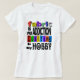 Quilters não pode parar a busca pelo "tecido" que é justo! Então, eles comprares muito caso seja necessário no futuro. "Tecido é meu vício. O alicerce é o meu Hobby." Isto é o que se lê em gráficos coloridos na frente desta t-shirt. Você pode comprar isso na camiseta masculina também se precisar de um tamanho maior. Desenhado por Sheila Cicchi, Brownielocks.com, Todos os Direitos Reservados.