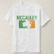 Um t-shirt que caracteriza um trevo branco, verde, e alaranjado irlandês afligido com o sobrenome Mccauley.