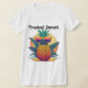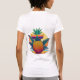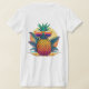 Esta vibrante design de camiseta apresenta um abacaxi estilizado vestindo um par de óculos escuros contra o pano de fundo de um pôr do sol tropical. O abacaxi é detalhado com um padrão texturizado, e os óculos de sol refletem as cores vibrantes do pôr do sol. As frentes de palma enquadram os lados inferiores da imagem, melhorando seu tema tropical.