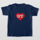 Esta t-shirt tem um coração vermelho vibrante contendo as letras maiúsculas, brancas e em negrito UT, a abreviatura oficial de Utah, o estado das colmeias.