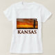 A beira de estado de Kansas encheu-se com uma silhueta da vaqueira e suas pistolas no por do sol