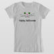 Aqui está uma design divertida para qualquer ocasião. Ele tem olhos verdes brilhantes de gato, um nariz de gato rosa giro e sussurros longos. O texto "Feliz Dia das Bruxas" pode ser personalizado.