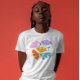 t-shirt verde de abstrato floral de cores brancas