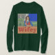 Camiseta de Wifey Capa Verde Esta é uma camiseta verde de manga comprida. A design foi criada com arte gerativa. A trabalho de arte apresenta uma ilustração cômica de uma mulher bonito sentada em uma varanda frontal. Ela tem cabelo castanho e está vestindo uma camisa azul e um colete vermelho. Ela está segurando uma caneca branca. A palavra Wifey está em letras grandes. A imagem está na frente e atrás da camiseta. Você pode alterar a imagem com o botão Personalizar.