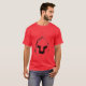T-merda vermelha com o capacete que desing sobre. O capacete tem o embaçamento vermelho em torno dele impressão do givin que o capacete é destacado da camisa.