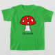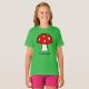 Um cogumelo vermelho bonito com os pontos brancos com espaço para um nome ou outras palavras.