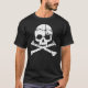 Essas camisetas gráficas e outros itens são enfeitados com um crânio simples e ossos cruzados com textura vestida e rachada para um olhar antigo e antigo. Bom para temas góticos, de Halloween e piratas.