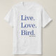O vivo, amor, design do pássaro é grande para o observador de pássaro ou o amante do pássaro em sua vida! Os pássaros & as flores são o pássaro #1 e o compartimento do jardim em America do Norte. Nós orgulhamo-nos em comemorar a "beleza em seu próprio quintal" cobrir uma vasta gama de assuntos tais como a ornitologia, atraindo colibris, birdhouses de construção, jardinando para borboletas, alimentando pássaros para menos, os vegetarianos crescentes, contos experiências birding dos leitores', mais uns muitos mais. Nós realizamos que os jardineiro e os birders compartilham frequentemente dos mesmos interesses. Fazem sentido-se você quer atrair pássaros a seu quintal, jardinando e ajardinando é uma grande maneira do fazer. E quando um jardim na flor, adicionando o movimento de pássaros coloridos e de suas canções animadores fizer um quintal vir vivo. Visita www.birdsandblooms.com/zazzle para ver mais!