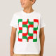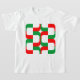 Um design geométrico em negrito, constituído por formas de ângulo curvo, dispostas em direções alternadas com cores alternadas.