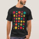 Um design composto de cinco colunas de sete pontos circulares ordenados por tamanho e dispostos em direções alternadas em um palete atraente de cores.