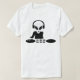 T-shirts a volta estrangeira preta apresenta o ícone do DJ