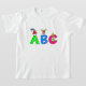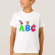 Ilustração bonito dos desenhos animados de rapazes pequenos felizes e diversos e das meninas que escalam sobre as letras gigantes do alfabeto que soletram para fora a palavra ABC. Imagem disponível em vários presentes e produtos. T-shirt. Hoodies.