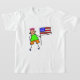 Desenho infantis cômico de um garotinho segurando uma bandeira da América.