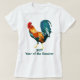 Facilmente personalize ou remova o texto bonitos e alegres camisa chinesa do ano nestes 2017 novo. Caracteriza um galo vermelho, amarelo, azul e verde. O texto lê: Ano do galo, 2017.
