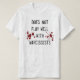 Uma indicação engraçada. "Não joga bem com narcissists" na rotulação e na obscuridade pretas sujas - splats vermelhos do sangue em uma camisa branca de t.