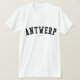 Verifique para fora este t-shirt de Antuérpia! É você de Antuérpia, Bélgica? Você tem um amigo ou um membro da família que amem Antuérpia, Bélgica? Em caso afirmativo, este t-shirt da "bandeira" é exatamente o presente que você está procurando! As características de design "Antuérpia" na rotulação preta arqueada na pia batismal clássica da faculdade.